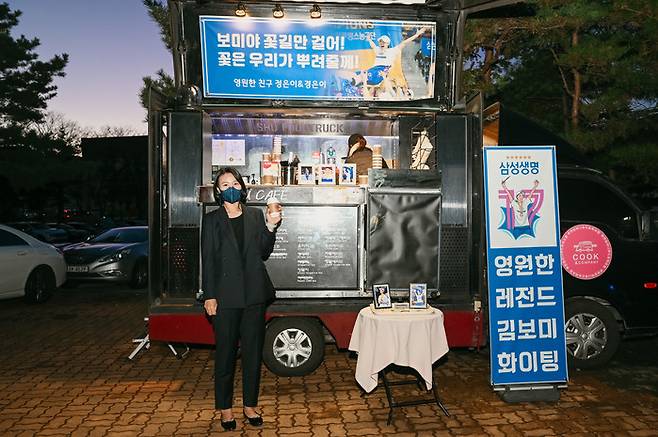 경기 전 용인체육관 앞에는 김보미의 은퇴식을 맞아 커피트럭이 도착해 눈길을 끌었다. 바로 절친한 후배 이경은(신한은행)과 김정은(우리은행)의 '깜짝 선물'이었다. 커피 트럭 천장에는 "보미야 꽃길만 걸어! 꽃은 우리가 뿌려줄께!"라는 이경은과 김정은의 애정이 듬뿍 담긴 문구가 적혀 있었다. 팬들과 관계자, 스탭요원들은 추운 날시 쏙 따뜻한 커피 한잔을 기울이면서 기쁜 마음으로 체육관에 입장했다.