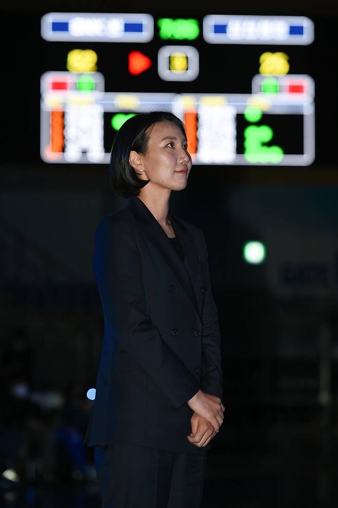 마이크를 잡아든 김보미는 “(현역 생활) 많이 부족했고 마음에 들지 않았던 경기도 많았지만 부족한 저를 끝까지 응원해주신 팬들께 감사드린다. 이제는 선수로서 생활은 끝이 났지만, 앞으로 계속해서 여자농구 발전을 위해 현장 곳곳을 누비며 일할 것이다. 제2의 삶을 살아가는 김보미도 응원해주셨으면 좋겠다”는 포부를 밝혔다.