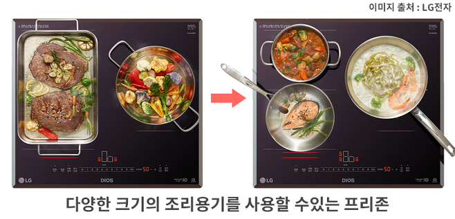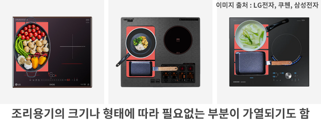 따라서, 무조건 프리존 제품을 구매하기보다는 집에 자주 사용하는 대형 냄비나 팬이 있는지 따져보고 선택해야하며, 2분할, 3분할 제품을 구매할 예정이라면 고르게 조리되지 않을 수 있다는 점을 감안해야 합니다.