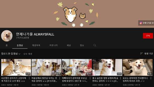 3위를 차지한 '언제나 가을'은 보더 콜리 강아지 '가을'이 코리안 숏헤어 고양이 '애기'와 함께하는 일상생활을 담는 채널로, 구독자 수 6만 1000 명, 누적 조회 수 1500만 회를 보유하고 있다. 올 한 해 동안에만 구독자 4만 명을 끌어모으며 빠르게 성장하고 있는 해당 채널은 영상당 평균 조회 수가 구독자 수의 2배에 달할 정도로 게재하는 영상마다 큰 주목을 받고 있다.
