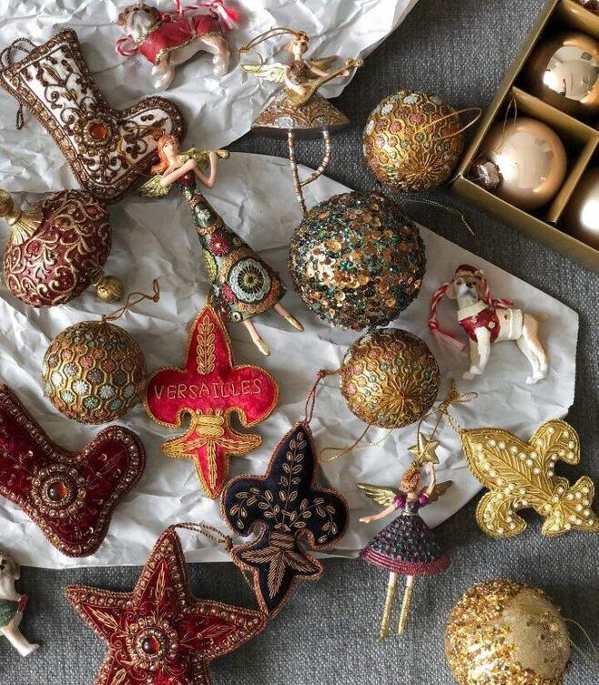 트리 만들기의 하이라이트는 역시 오너먼트 장식들이다. 만약 트리를 꾸미는 첫 해라면 테마 컬러에 맞춰 기본적인 볼 디자인부터 구매해야 한다. 일단 기본부터 갖춘 뒤, 유니크한 디자인들은 매년 몇 가지씩 모으면서 취향에 맞게 차차 업그레이드 시키는 게 트리 장식의 묘미.