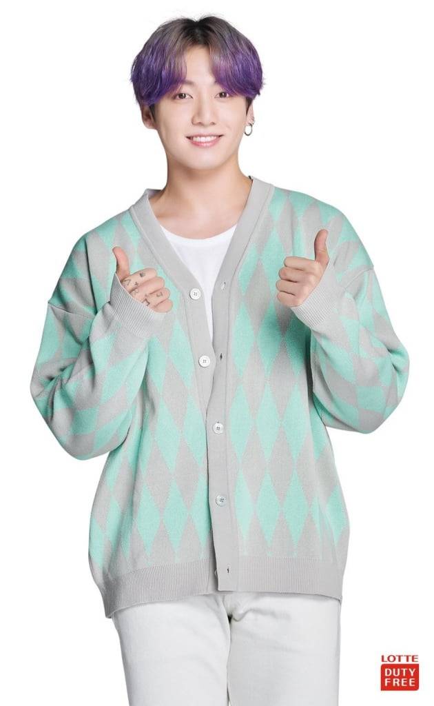 한편, 롯데면세점은 멤버별 비하인드 다운로드 이미지도 제공했고 정국은 보라 머리에 그레이, 민트가 조합된 가디건을 입고 과즙미 팡팡 터지는 상큼 청량한 매력을 한껏 발산했다.