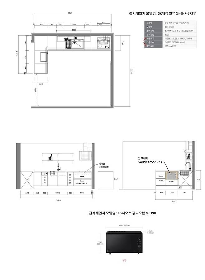 빌트인 가전이 들어가는 부분은 가전의 정확한 사이즈와 위치 확인이 중요해요. 가전이 안들어가거나 앞뒤좌우로 간격이 크게 생겨버리면 수납장을 다시 짜야하는 불상사가 발생합니다. 인덕션이나 가스레인지의 경우 높이가 맞지 않으면 상판과 높이가 차이나 사용이 어렵구요. 냉장고와 마찬가지로 사용 제품이 결정되었다면 정확한 제품 스펙을 전달하고 이에 맞춰 제작, 타공되도록 주문할 때 반드시 체크해주세요!