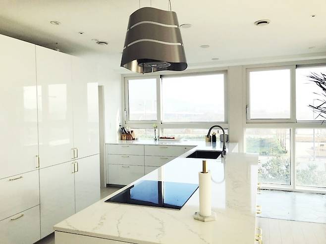 대면형 조리대는 탁 트인 공간을 보며 조리를 할 수 있다는 장점을 가진 로망 구조입니다. 하지만 아일랜드나 ㄷ자 장을 세우고 그냥 쿡탑을 놓는 것이 아니에요. 반드시 사전에 전기 작업이 필요합니다.