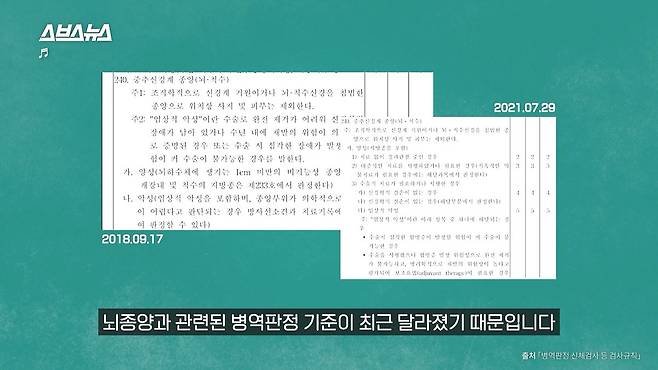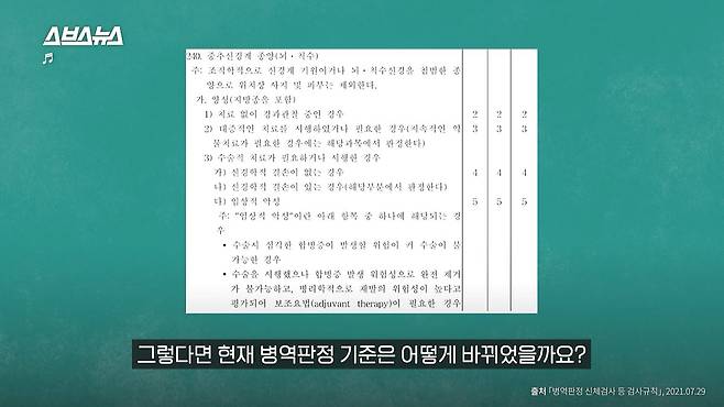뇌종양과 관련된 병역판정 기준이 달라졌습니다.