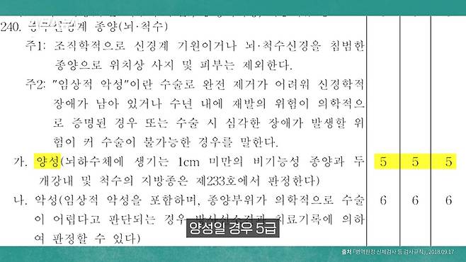 양성일 경우 5급, 악성일 경우 6급을 받았습니다.