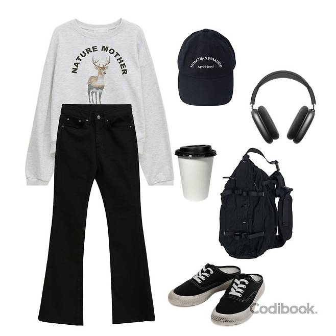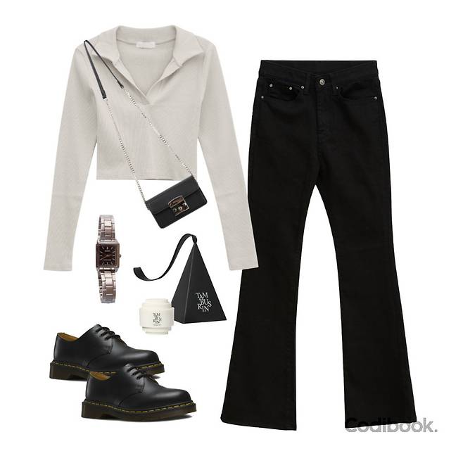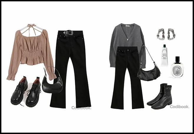 허리와 힙은 슬림하게 핏 되면서 밑단은 넓어지는 스타일리쉬한 매력을 갖고 있는 검정색 부츠컷 팬츠 하나로, 8가지 코디하는 방법을 소개 해 드릴게요.