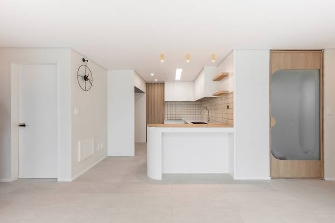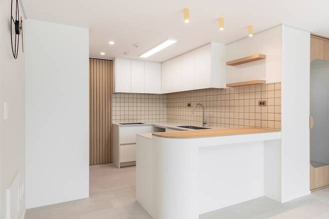 저희 집은 구축 아파트의 판상형 구조로, 좁은 가로 폭의 주방이 특징인데요. 그래서 주방에 구조 변경에 대한 고민은 계속 갖고 있었어요. 좁은 주방 폭 때문에 주방 확장을 고려했지만 주방을 확장해도 길쭉한 주방이 되어 요즘 대세인 대면형 주방을 하기가 애매하더라구요. 11자 주방을 하기에도 가로 폭이 좁구요... 그 외에도 큰 식탁에 대한 로망, 확장 시 세탁기 위치 변경, 예산 문제 등의 이유로 구조 변경은 하지 않았어요.