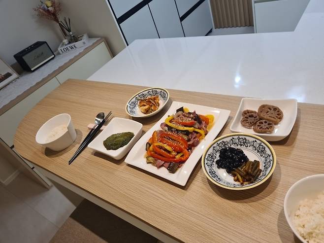 그래서 남편이랑만 먹을 때나 아이랑만 먹을 때는 주로 아일랜드 식탁을 사용해요. ㅎㅎ