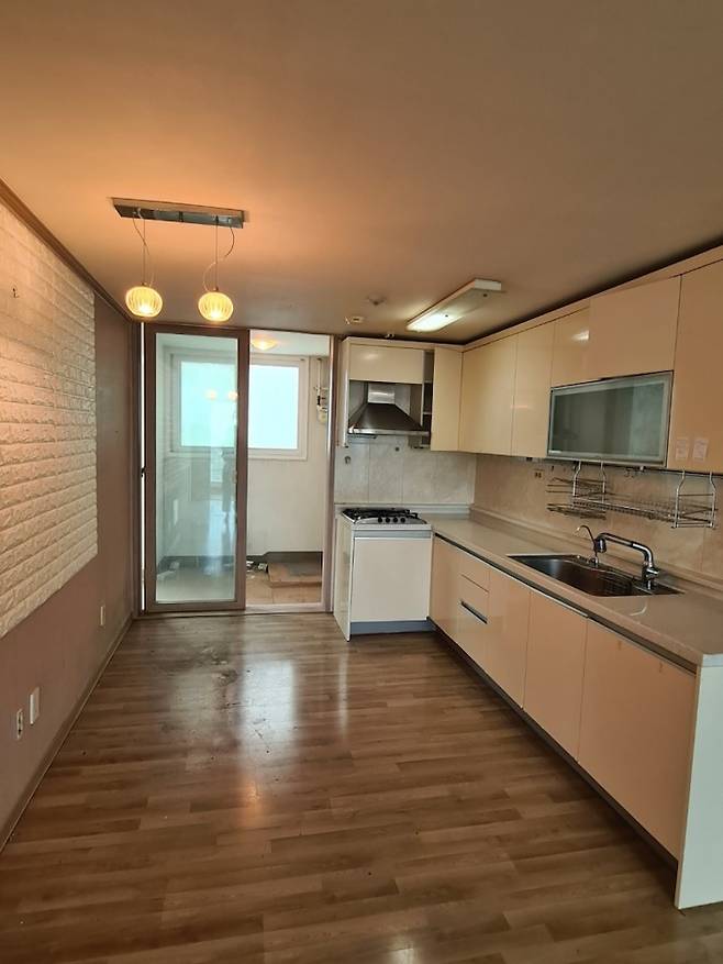 원래는 이렇게 주방에 새시가 있었어요. 주방 쪽으로 광폭 베란다 및 세탁실이 있거든요.