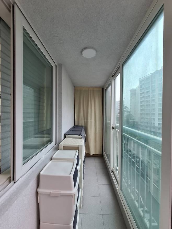 주방 쪽 광폭 베란다의 반대쪽 모습이에요.