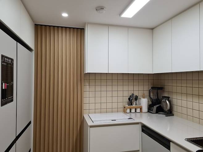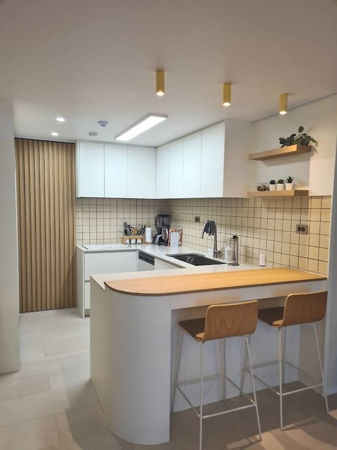여기까지 따땃쭈의 주방 인테리어 후기였습니다. 구축 32평 아파트도 인테리어를 통해 따스한 분위기로 거듭날 수 있다는 걸 느꼈어요. 구축 아파트, 특히 주방 인테리어를 계획하고 계시는 분들이 있다면 저희 집이 참고 케이스가 되었으면 좋겠습니다 :)