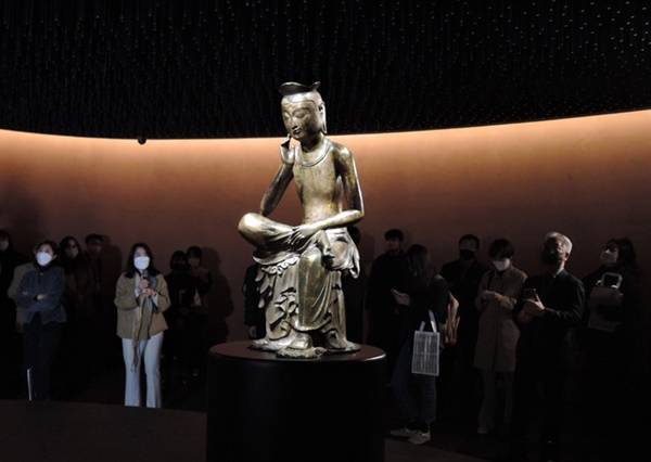 민 관장은 "반가사유상은 생로병사와 인간의 본질에 대한 깊은 고민의 상징과 함께, 깨달음의 경지를 향해 나아간다는 의미가 있다"며 "코로나를 극복하려는 이때 많은 국민이 여기서 지친 마음을 달래고 다시 일어설 힘을 얻는 계기가 되길 바란다"라고 말했다. 그러면서 "금동으로 저렇게 부드럽고 만든 완벽한 불상은 세계적으로 유일하다"라고 덧붙였다.