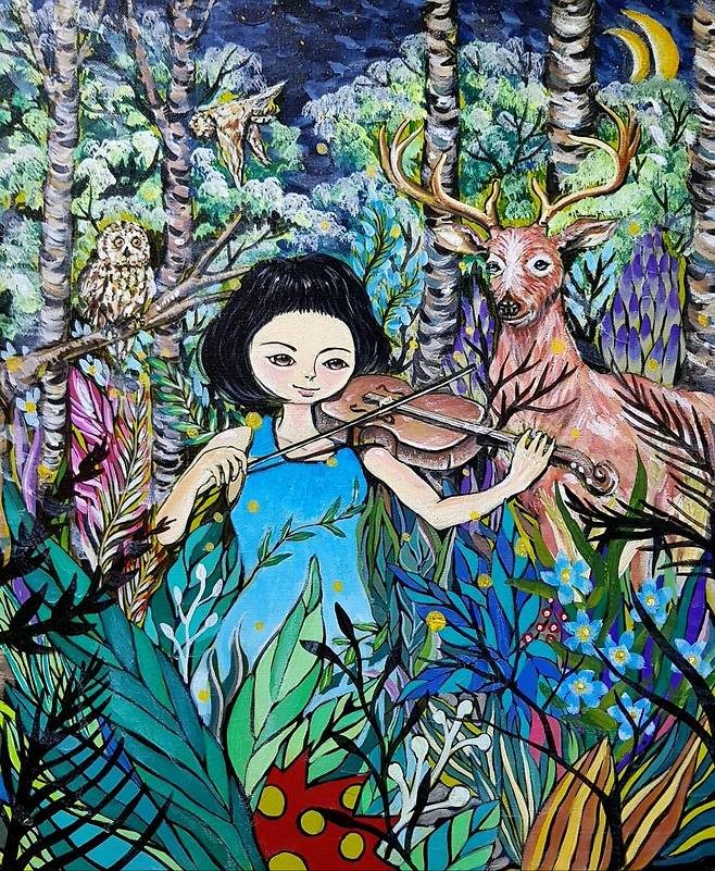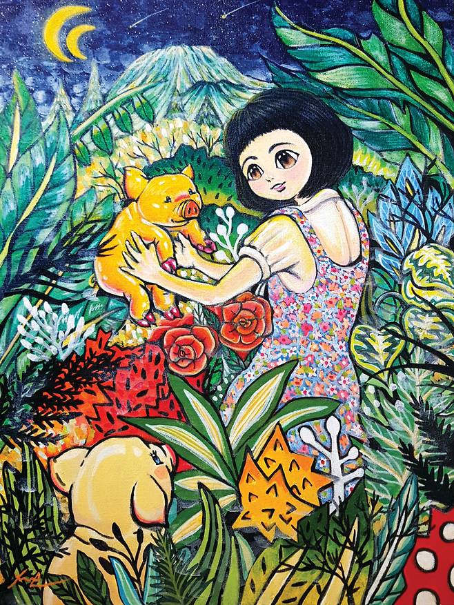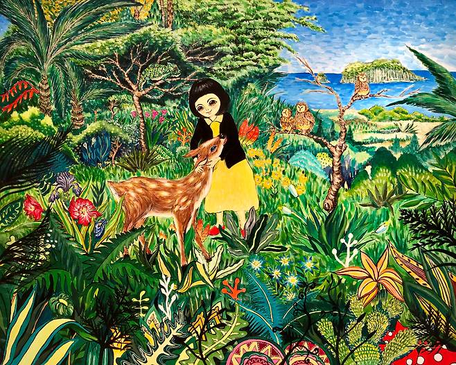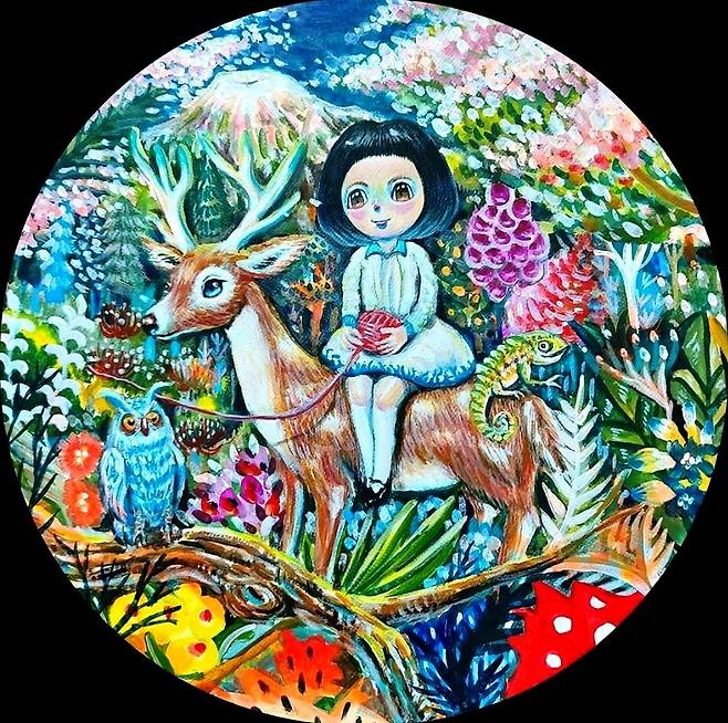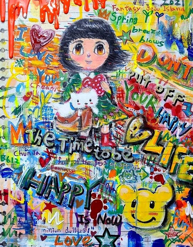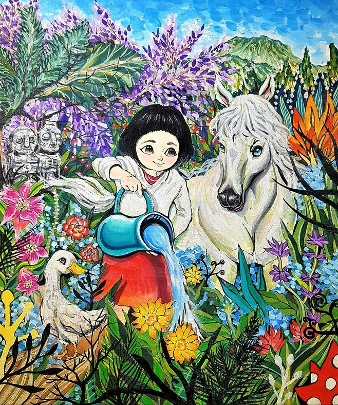 제주의 섬 소녀(춘자)의 시선으로 바라 본 때 묻지 않고 순수한 세상 속 주인공은 나의 어머니를 모티브로 해 판타지적인 요소들을 배치했고, 마치 동화 속 한 장면을 보는 듯 한 몽환적이고 아름다운 세상 즉 판타지 제주를 묘사하고 있다. 제주 섬소녀(춘자)의 순수한 눈망울을 통해 말, 사슴, 부엉이 등 여러 동물들과 함께 제주를 대표하는 풍경이나 토생 식물, 그리고 제주의 바다 속 생물까지 마치 꿈속을 유영하 듯 제주의 아름다운 요소들을 만나 행복한 시간을 보내는 모습을 보고 있노라면 동심을 자극해 어릴 적 순진무구했던 나 자신과 맞닿을지도 모른다는 생각이 든다.(작가노트)