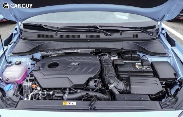 코나N에는 2.0L 가솔린 터보 엔진과 8단 습식 DCT가 조합된다. 동일한 조합의 벨로스터N보다 최고출력은 5마력, 최대토크는 4kg.m가 더 높은 최고출력 280마력, 최대토크 40.0kg.m다. 벨로스터N과 또 다른 특징은 최고출력이 나오는 타이밍이 5500~6000rpm으로 벨로스터N보다 500rpm 빨라진 점이다. 이런 플랫한 출력 곡선은 고속 주행에서 한층 맛깔난 맛을 느낄 수 있다.