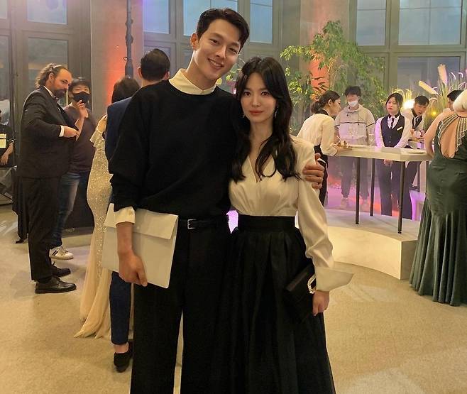 공개된 사진 속 송혜교와 장기용은 11살의 나이 차이가 무색할 만큼 다정한 분위기를 연출해 눈길을 끌었습니다. 특히 장기용은 송혜교의 어깨를 감싸며 다정한 미소로 실제 연인 같은 분위기를 자아냈는데요. 송혜교는 20대 같은 동안 미모와 잘록한 개미허리 라인을 자랑해 부러움을 샀습니다.