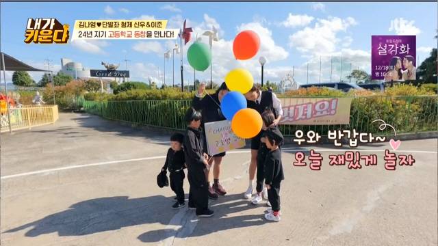 김나영은 "요즘 MZ세대들 사이에서 교복을 입고 데이트 하는게 트렌드라더라. 그래서 신우 이준이와 교복을 입고 나왔다"라고 했다. 80년대 교복 스타일을 차려 입은 아이들과 실제 출신 '춘천 여자 고등학교' 교복을 입은 김나영 앞에는 여중 여고 동창이 등장했다.