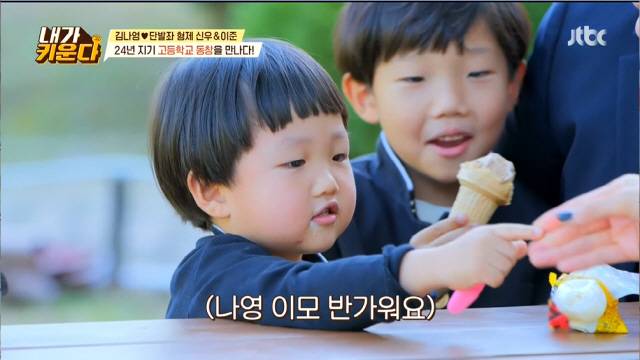 똑같이 아들 둘을 키우는 친구는 "원래 아이는 둘이 키우나 셋이 키우나 결국 나중에 보면 혼자 키우게 됐다. 법적 테두리만 다르지 그냥 혼자 키우는 거다. 내 아들은 귀엽기나 하지 어머니 아들은 참 크다"라고 너스레를 떨었다. 김나영은 "정말 꿈 많은 여고생이었는데 아이 둘의 엄마가 됐다니"라며 감격스러워했다.