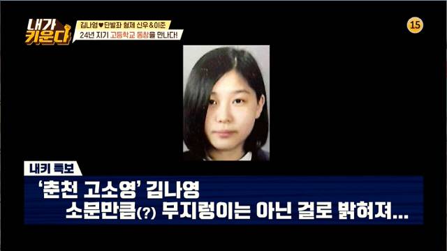 친구는 "꼭 이야기해주고 싶은 게 있었는데 네가 TV에서 무지렁이로 나오더라. 맨날 흙 퍼먹고 수학 5점 맞고 이런 이야기가 나오는데 우리는 춘천의 자랑 '춘여고' 출신이다. 춘천여고에 가려면 중학교 때 반에서 5등 안에 들었어야 했다. 김나영은 고등학교 입학 당시 전교 50등 안에 들어갔었다"라고 회상했다. 김나영은 상급반인 '특수반' 출신이라고. 김구라는 "그런데 좀 덜 풀렸구나"라고 놀렸다.