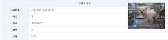 포메라니안 / 여아(중성화 완료) / 2013년생 추정 / 3.8kg 입양센터 생활 중