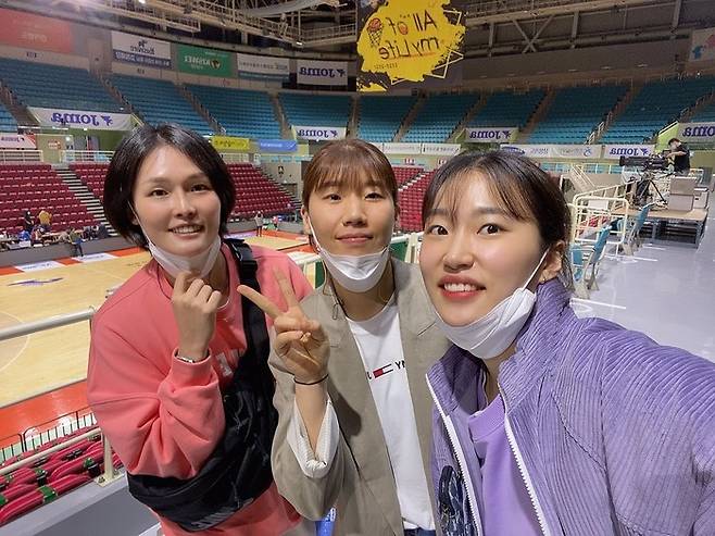 “여자농구에 유독 1994년생 선수들이 많잖아요. 다들 친한 편이긴 한데 저희 셋은 어렸을 때부터 워낙 잘 어울리기도 해서 지금까지 우정이 지속되고 있는 것 같아요. 우스갯소리로 은퇴할 때쯤 저희가 결혼 못하면 셋이 강아지 한마리 씩 키우면서 한 동네에서 살자는 얘기까지 해요. 또 세 명 모두 못나기도 했잖아요. 어렸을 때는 누가 더 이쁜가를 놓고 서로 싸우기도 많이 싸웠어요. 하하. 저희 셋은 어렸을 때부터 허튼 행동 안 하고 건전하게 놀았어요. 지금도 그냥 시간 맞을 때 차 타고 카페 가서 시간 가는 줄 모르고 수다 떨며 노는 편이에요. 세 명 모두 노는 코드가 비슷하기도 해서 더 잘 맞는 것 같아요.”