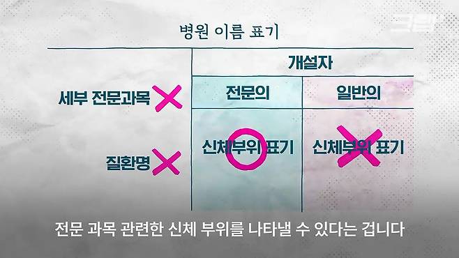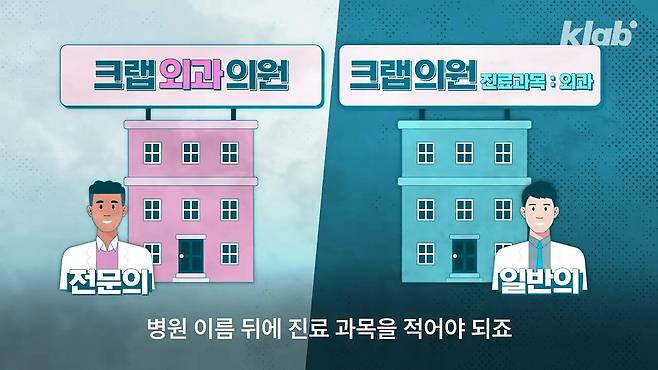 의사 면허증만 있는 ‘일반의’는 병원 이름 뒤에 진료 과목을 적어야한다고 합니다.