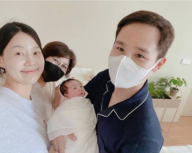 함께 공개된 사진에는 한지혜 부부와 생후 28일 된 딸 슬이의 모습이 담겼다.