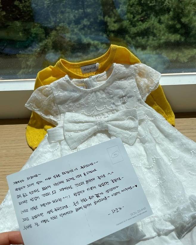한지혜는 또 "윤슬이랑 시원하게 자라고 여름 침구 보내준 정현 언니, 맛있는 중화냉면 먹으라고 보내주신 이연복 셰프님, 오랜 팬인 차코가 보내준 아기 옷과 액세서리 선물, 신랑 회사 부장님 사모님이 보내주신 아기 옷. 감사합니다. 예쁘게 잘 키울게요"라며 받은 선물들을 인증, 감사한 마음을 드러냈다.