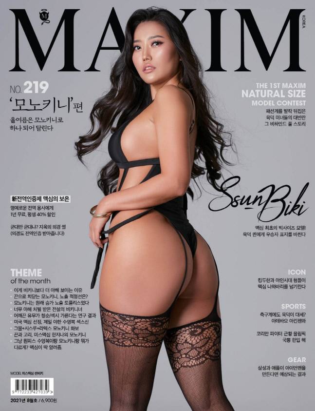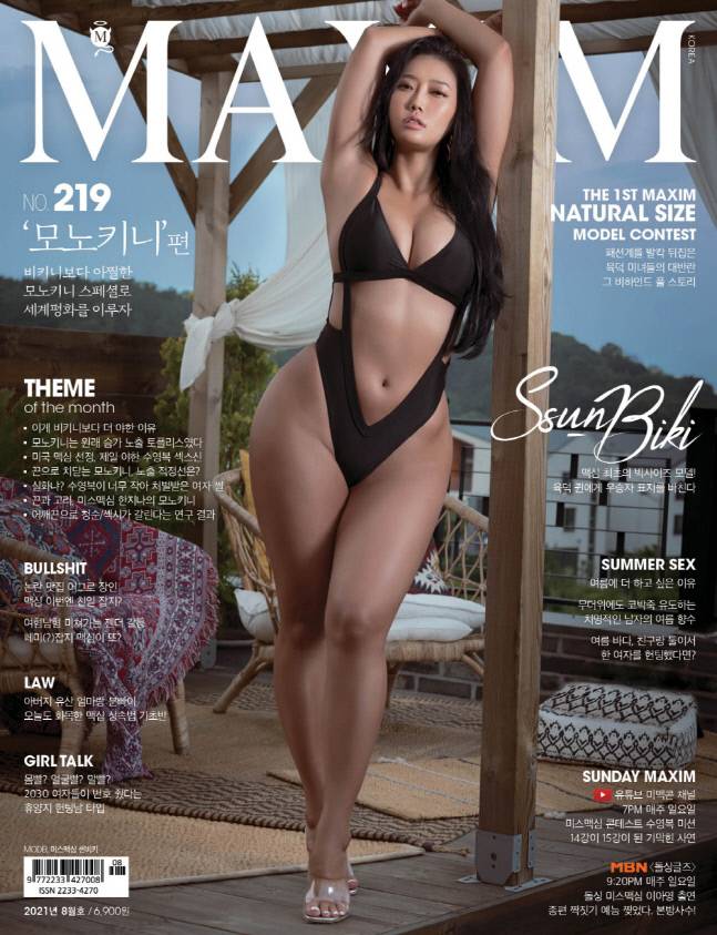 한국 최고의 내추럴 사이즈 모델 썬비키가 맥심의 커버를 장식했다.