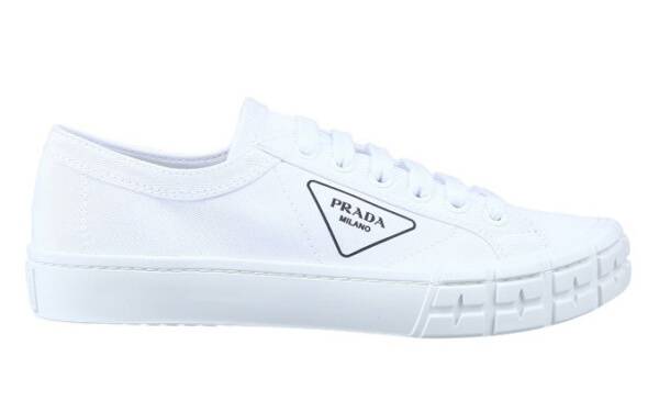가볍고 실용적인 나일론 소재의 의류부터 상징적인 사피아노 가죽으로 만든 백과 액세서리까지. 곳곳에 장식된 삼각형 메탈 로고로 브랜드의 아이덴티티를 드러낸 프라다. 세계 3대 명품 브랜드로 불리는 프라다에서 선보인 개버딘 스니커즈는 오토바이 타이어를 모티브로 디자인한 러버 솔이 특징이다. 간결한 스니커즈 디자인에 약 5㎝의 플랫폼 디테일이 적용되어 남다른 분위기를 자아낸다. 측면에는 프라다를 상징하는 삼각형 로고가 더해져 럭셔리 무드를 더했다.
