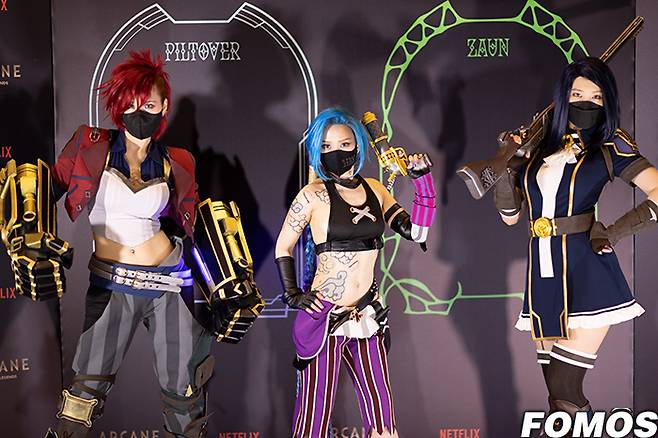 7일 서울 용산에서 진행된 아케인 와치 파티에서도 이러한 분위기가 이어졌고, 스파이럴캣츠의 코스프레 쇼도 진행됐다. 프로 코스프레 팀인 스파이럴캣츠는 리그 오브 레전드 한국 출시부터 지속적으로 관련 활동을 이어갔고, 이번 아케인 와치 파티에도 스파이럴캣츠의 코스프레를 만날 수 있었다. 게임과는 또 다른 챔피언의 모습을 보인 아케인의 챔피언은 어떻게 구현했는지, 스파이럴캣츠의 '타샤' 오고은과 '도레미' 이혜민을 만나 이야기를 들어보았다.