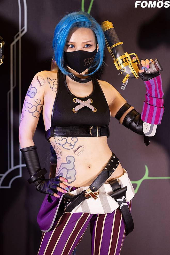 타샤: 같은 캐릭터라고 하더라도 컬러 톤이 달라요. 게임 내에서 바이나 징크스는 다채로운 색상으로 구성되었는데, 아케인에서는 차분한 톤으로 등장하거든요. 가발 색상을 정할 때도 고민이 많았어요. 바이는 머리 색이 핑크고, 징크스는 진하고 밝은 파란 색인데 아케인에서는 모두 컬러 톤이 내려갔거든요. 아케인의 분위기에 맞추려면 기존의 색상과 다르게 새로 구현해야해서 시간이 오래 걸렸습니다.