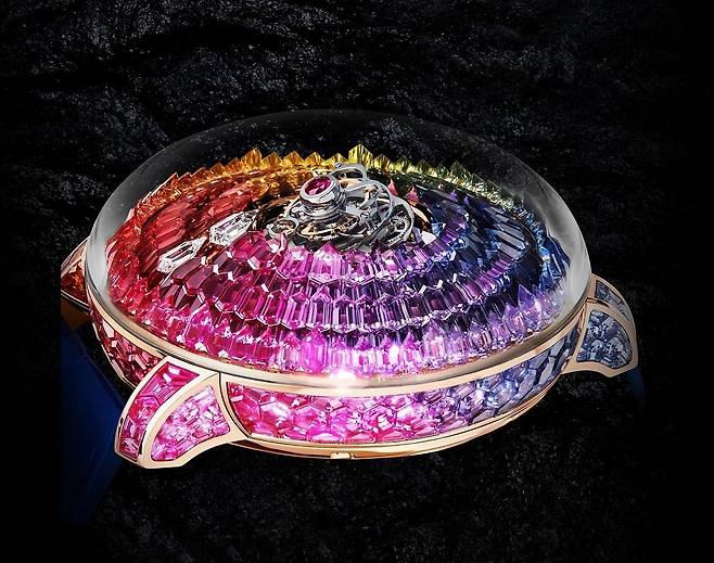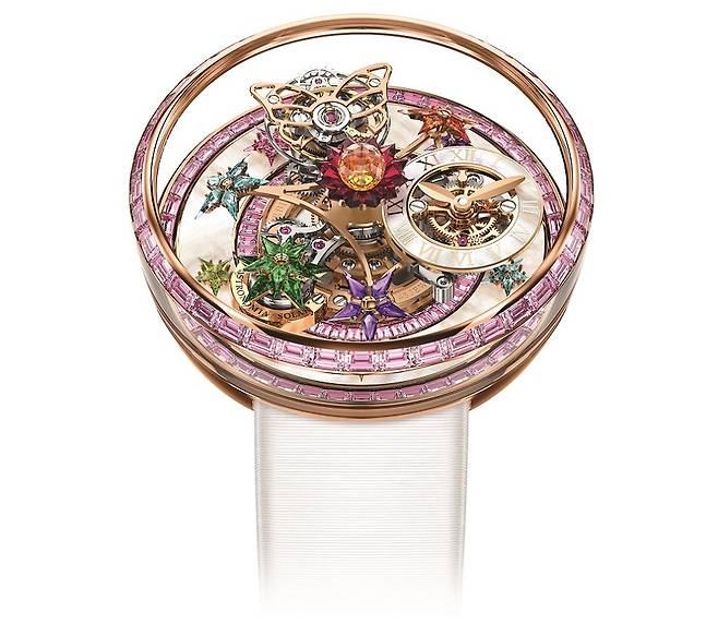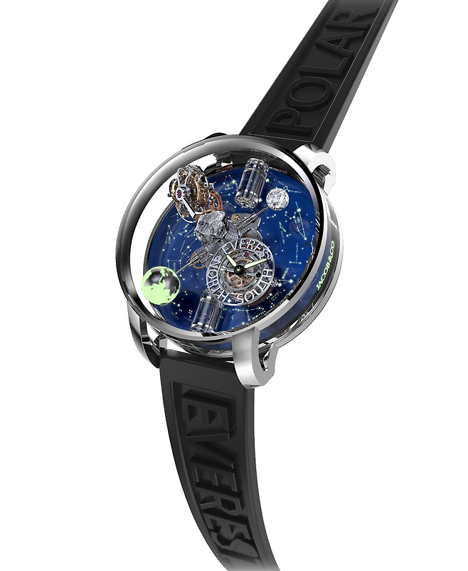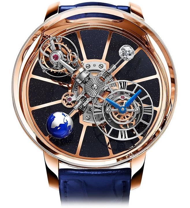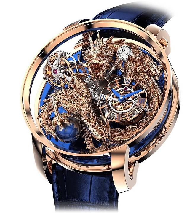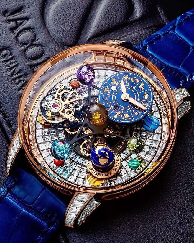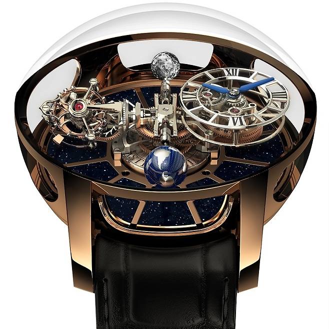 지금은 유명무실해졌지만 불과 몇 년 전만 하더라도 세계에서 가장 큰 시계 및 주얼리 박람회의 위상을 자랑했던 바젤월드(Baselworld)에 제이콥앤코도 매년 성실하게 참가했는데요. 필자 개인적인 의견을 덧붙이자면, 제이콥앤코의 부스는 매년 엄청난 포스와 남다른 화려함으로 여느 메이저 브랜드들을 압도할 만큼 위세가 대단했습니다. 특히 2014년 바젤월드에서 데뷔한 이래 매년 새로운 테마로 변주를 이어간 아스트로노미아 시리즈는 제이콥앤코 부스를 반드시 둘러봐야 할 이유가 될 정도였습니다. '천문학'을 뜻하는 거창한 이름만큼이나 아스트로노미아는 손목시계 역사상 유례없는 개성적인 천체시계를 선보이고자 했던 제이콥 아라보의 바람이 고스란히 구현된 기능적이면서도 미학적인 마스터피스 컬렉션이라 할 만합니다.