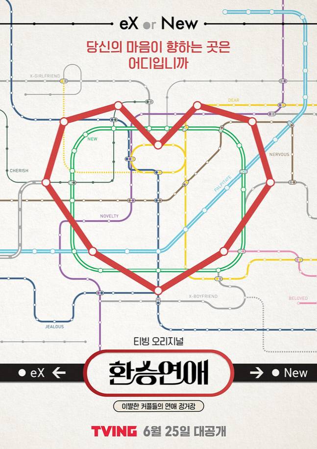 ‘환승연애’는 나영석PD와 tvN ‘꽃보다 할배’부터 ‘꽃보다 청춘’, ‘삼시세끼’, ‘윤식당’ 등을 함께한 이진주 PD가 기획한 티빙 첫 연애 프로그램이다. X와 함께하는 연애 리얼리티라는 파격적인 기획에 대해 이진주PD는 “지난 연애에 대한 리뷰를 할 수 있다면 앞으로 더 좋은 연애를 할 수 있지 않을까라는 생각으로 기획했다”고 밝혔다.