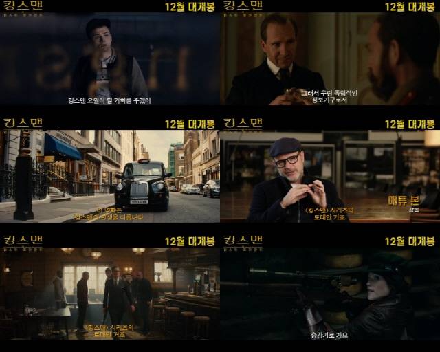 '킹스맨: 퍼스트 에이전트'는 전 세계를 위협하는 잔혹한 전쟁 뒤에 가려진 역사상 최악의 적을 막아야만 하는 사람들의 이야기로 베일에 감춰졌던 최초의 독립 정보 기관 킹스맨의 탄생을 그린 작품이다. '킹스맨: 시크릿 에이전트'와 '킹스맨: 골든 서클'을 연출한 매튜 본 감도기 다시 한번 메가폰을 잡고 랄프 파인즈, 해리스 딕킨슨, 리스 이판, 젬마 아터튼, 디몬 하운스, 매튜 구드 등이 출연한다. 12월 22일 개봉.