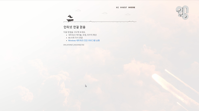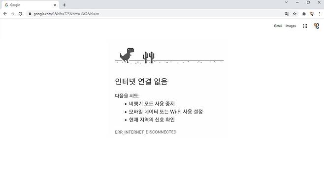 그런데 신기한 건 이 공룡 화면에 스페이스바를 누르면 게임이 실행된다. 스페이스바를 누르면 갑자기 공룡이 마구 뛰기 시작하는데 스페이스바를 다시 누르면 점프하고 아래쪽 화살표를 누르면 엎드린다. 다가오는 선인장이나 익룡(프테라노돈)을 피해야 하는데 점점 속도가 빨라져 게임이 어려워진다. 게임을 하다 갑자기 와이파이가 연결되면 와이파이, 즉 운석을 맞은 공룡이 사라져 게임이 중단되는데 검색창에 ‘chrome://dino’를 입력하면 게임을 플레이 할 수 있다.