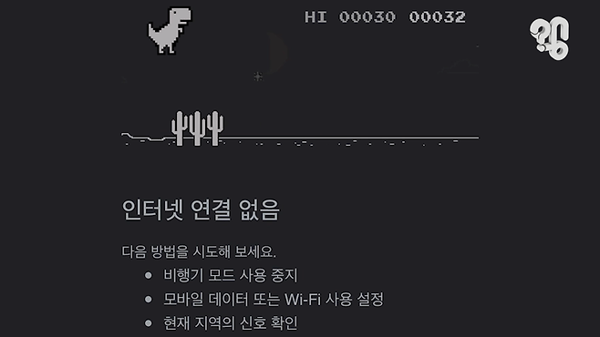 인터넷이 끊겨도 핸드폰으로 할 수 있는 게임이 있다. 무려 전세계에서 한 달에 2억7000만회 정도나 플레이되는 게임이다. 바로 인터넷이 안 되는 곳에서 크롬 브라우저를 실행하면 나오는 이 공룡으로 하는 게임인데, 이 게임에 대해선 영상 뒷부분에 간략하게 설명하기로 하고 유튜브 댓글로 “크롬하다 인터넷 끊기면 나오는 게 왜 하필 공룡인지 취재해 달라”는 의뢰가 들어와 취재했다. 크롬 디자인팀의 설명을 들어보면 조금 황당할 수도 있고, 아주 놀라울 수도 있는 이유가 있더라.