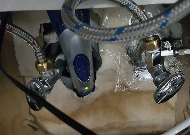 아무튼 당황스럽던 차에 관리실에 전화했더니 외부에 있는 수도 계량기 쪽이면 몰라도 집 안에 있는 실내 배관은 직접 녹여야 한다고 하더라고요. 그리하여 직접 녹였어요.