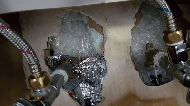 냉기가 새어나오는 건 줄어들었으나, 그 냉기가 수도관에 고스란히 남아 수도 배관을 얼리는 현상이 벌어지고 만 것 같아요.