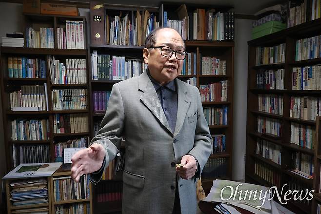| ▲ [오마이뉴스 단독 인터뷰] '김건희는 쥴리' 증언 안해욱씨 "나는 쥴리를 만났다. 사실대로 말할뿐" 1997년 ‘쥴리’라는 예명을 쓴 김건희씨를 만났다고 제보한 안해욱 전 대한초등학교태권도연맹 회장이 10일 오전 경상북도 경산 자택에서 오마이뉴스와 만나 당시 삼부토건 조남욱 회장의 초대로 김씨를 만났다고 증언했다. ⓒ 유성호 |