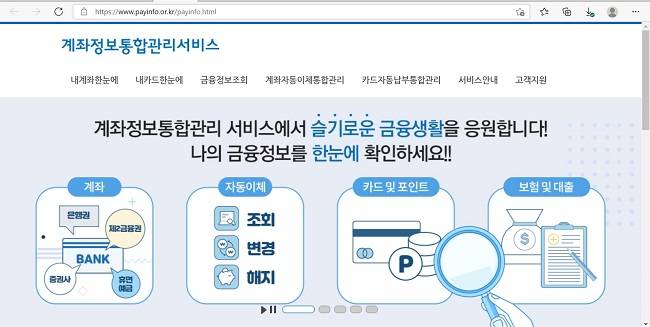 이 밖에도 이 사이트에서는 보험, 대출 ,카드 등에 설정된 자동납부 내역 등 다양한 정보를 관리할 수 있습니다. 자동납부를 설정한 카드를 다른 카드로 변경할 수도 있고요. 참고로 앞서 말했던 포인트 조회와 현금화 역시 어카운트인포에서 가능합니다.