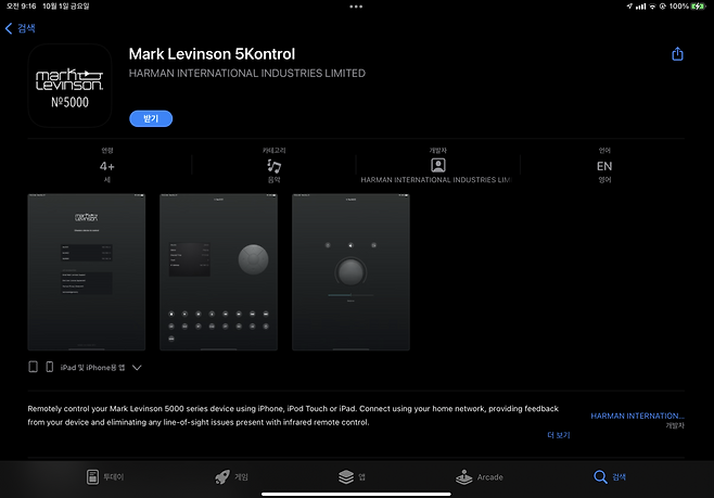 제품 후면에는 WBT제 바인딩포스트가 좌우로 대칭되어 자리잡고 있으며, 밸런스와 언밸런스 연결을 스위치를 통해 선택할 수 있게끔 되어 있다. 스테레오 모드를 사용할지 브릿지 모드를 사용할지 선택할 수 있는 스위치도 보이며, SW업데이트를 위한 USB포트와 이더넷 포트가 자리잡고 있다. 파워앰프에 이더넷 포트가 있는 상황이 의아해서 제품 메뉴얼을 살펴보았는데, 앞서 소개드렸던 5206 프리앰프와 5302 파워앰프 모두 후면의 이더넷 포트를 통해 네트워크에 연결되면 아래와 같은 5Kconrol APP을 통해 제품의 동작 상태를 모니터링할 수 있는 특징이 있다. 이를 통해서, 전원을 켜고 끄거나 입력신호를 선택하는 등의 기본적인 제품 조작이 앱을 통해 가능하게 되며 제품 내부의 SW업데이트도 이 앱을 통해 이루어지게끔 설계되어 있다.