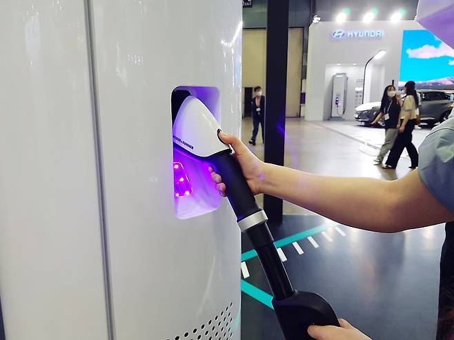 4) 빗물이 떨어져 충전 케이블의 충전 커넥터 및 충전 플러그의 결합부에 닿을 우려가 있는 장소(캐노피가 없는 충전 스탠드)에서는 가급적 충전을 하지 않는다.