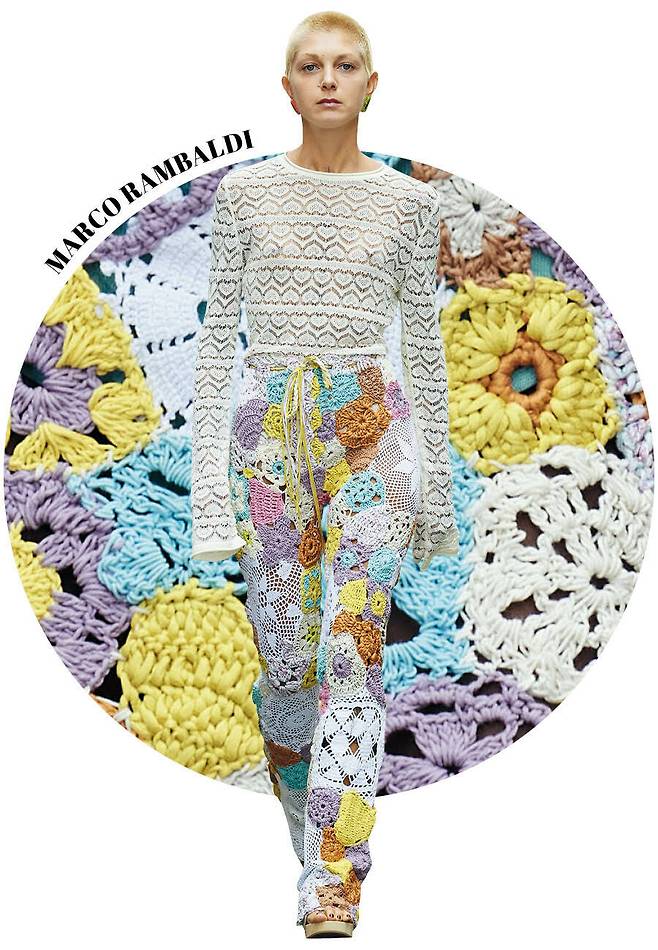 서정적인 매력의 크로셰가 인기다. 어린 시절 식탁보에서 목격되던 바로 그 디자인을 재현한다. 구멍이 송송 뚫려 통기성이 탁월하고 니트처럼 쉽게 늘어나 편안하다. 서툰 솜씨로 엮은 듯 투박할수록 멋이 배가된다.