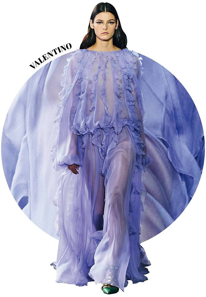 드라마틱한 차림을 원한다면 시폰을 주목할 것. 아주 얇은 소재 아래로 살결이 은근히 드러나 순수하면서도 센슈얼한 이중적 매력을 겸비한다. 바람에 나부낄 정도로 가볍기 때문에 입지 않은 듯한 시원함을 느낄 수 있다.