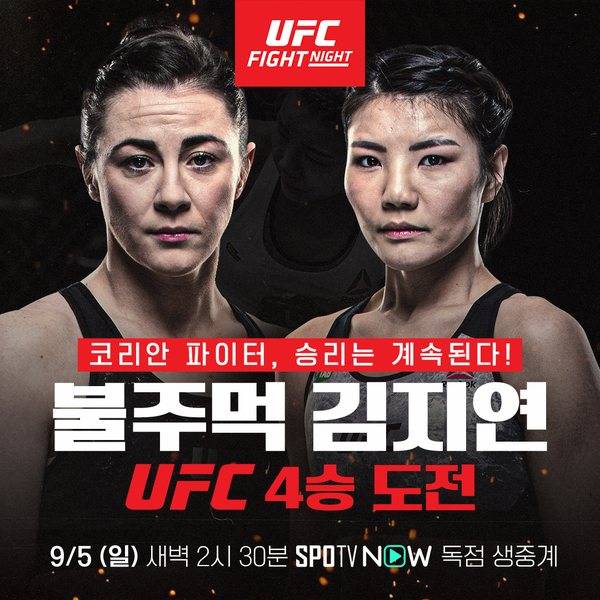 이번 대회에는 한국 여성 페더급 파이터 김지연(31)도 오픈핑거글로브를 낀다. 몰리 맥칸(31, 영국)을 제물로 UFC 4승째에 도전한다.