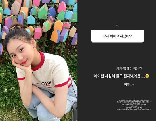 이날 한 팬이 근황을 묻자 엄지는 "제가 말할 수 있는 건 '에어컨 시원히 틀고 잘 지냈어요' 정도"라고 답했다.