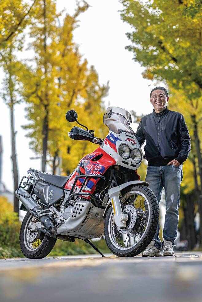 안녕하세요. 서울 마포에서 살고 있는 42살 김기환입니다. 하고 있는 일은 국내 인바운드 여행사를 운영하고 있습니다. 바이크를 타게 된 건 5년 전쯤 아는 형님이 바이크를 사시는 걸 보고, 어린 시절에 타던 기억이 떠오르기도 하고 갑자기 사고 싶어져서 핸디 50을 산 게 시작이었죠.(웃음) 그렇게 시작해서 주로 저 배기량 올드 바이크를 좋아해서 많이 가져왔어요. 그러다 우연히 알게 된 분과 바이크 이야기를 하다가 아프리카 트윈을 처음 알게 됐죠. 그분은 비행기 기장님이셨고, 아프리카 트윈 650과 750 두대를 가지고 계셨어요. 근데 직업이 직업이다 보니 국내에 자주 없으셔서 거의 소장만 하고 있던 걸 제가 가져오게 된 거에요. 그분이 650과 750 중에서 마음에 드는 걸로 가져가라고 하셨고, 디자인은 650이 더 마음에 들었지만, 아프리카 트윈으로 전국 일주를 해보고 싶은 마음에 부품수급이 더 좋은 750을 선택했습니다.