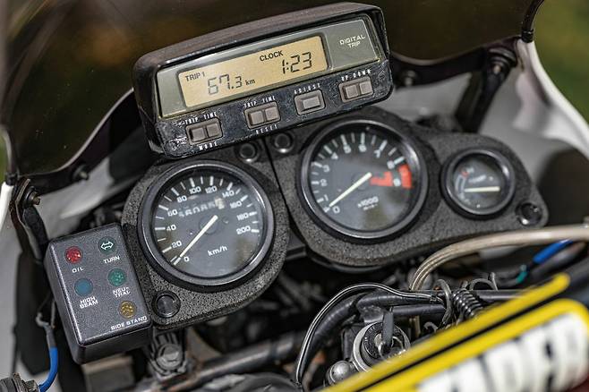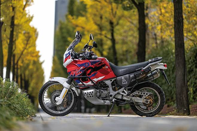 말랑말랑한 승차감 덕분에 장거리를 나가도 피로도가 현저하게 적어요. 시내 주행에서는 사실 그다지 재미를 느끼지 못했는데, 멀리 나가는 순간 그냥 스로틀을 당기면 170까지는 충분하게 치고 나가는 느낌과 트윈 엔진의 필링과 진동, 배기음이 너무 좋더라고요. 인젝션에서 느끼지 못하는 카브레터만의 감성도 있고요. 그래도 요즘 나오는 바이크들에 비하면 당연히 떨어지는 성능이겠지만, 97년도에 이런 서스펜션과 느낌을 만들고 랠리를 뛰었던 바이크라는 게 정말 멋있는 것 같아요. 왜 사막 여우라는 별명이 붙어졌는지 알 것 같아요. 저는 주로 저 배기량의 작고 가벼운 바이크만 타온 탓에 경사진 도로에서 아무 생각 없이 앞으로 주차를 해놓고선 뒤로 빼려다가 고생을 진탕했어요.(웃음) 그래도 주변에 다른 라이더 분들이 도와주셔서 무사히 해결했습니다.