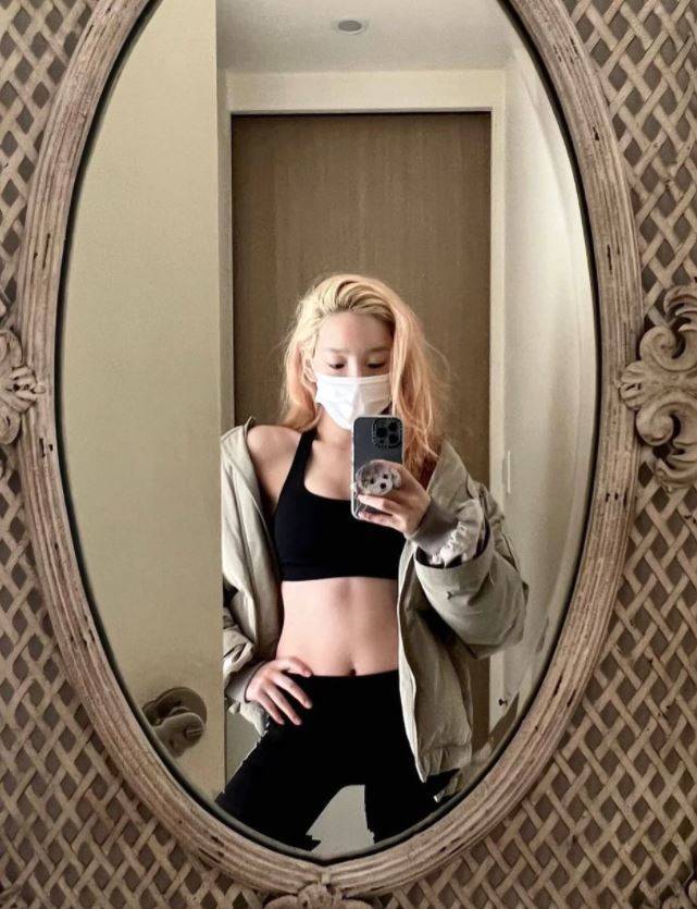 해당 사진에서 그는 검은색 브라톱과 레깅스를 입고서 거울에 비친 셀카를 찍는 포즈를 취했다. 무심하게 쓸어넘긴 긴 머리와 햐얀 배에는 군살 하나 없어 시선을 강탈했다.
